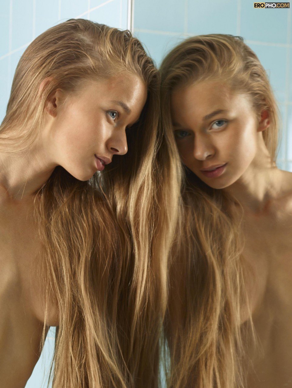 • Хрупкая молодая блондинка разделась перед зеркалом