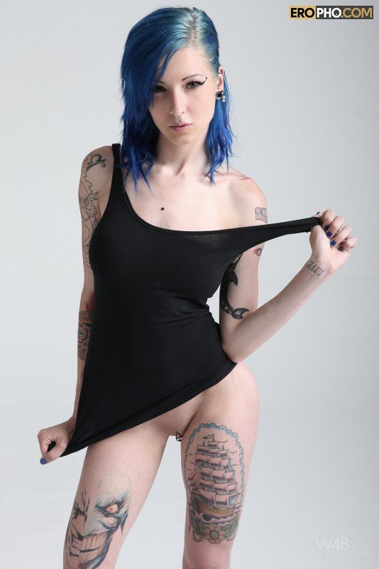 Своим внешним видом модная татуированная студентка очень сильно впечатлила бывалого фото оператора. Стянув короткую майку, дрянная бабенка с прикольным цветом волос взобралась на белый квадрат и принялась позировать. Сексуальная девушка похвасталась не только цветными тату, но и показала пирсинг на половых губах и клиторе. Ощупав груди и задницу, тян наклонилась и приступила мастурбировать перед объективом. Страстная девушка с классными сиськами лихо дрочила, но и бодренько теребила пальцами крупные сосочки. От всего этого мужик не только возбудился, но и смог спустить.