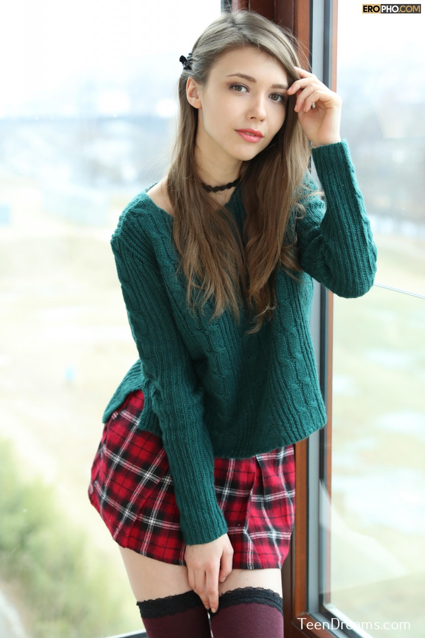 Милая украинская студентка Mila Azul в клетчатой юбочке и промокших от тоски, по мускулистому парню из группы, трусиках, откровенно показывает свои сладкие дырочки перед камерой. Вначале, эта кокетливая шлюшка задирает свой вязанный свитер и демонстрирует шикарные дойки с торчащими сосками. А после, она избавляется от своей юбки с трусами и, расположившись на широком подоконнике, эротично массирует половые губы ловкими пальцами. Легкая мастурбация красивой и молодой девушки, что так пылко доводит себя до оргазма, обязательно придется по вкусу многим ценителям женской красоты и настоящей невинной природы молоденьких студенток!Информация