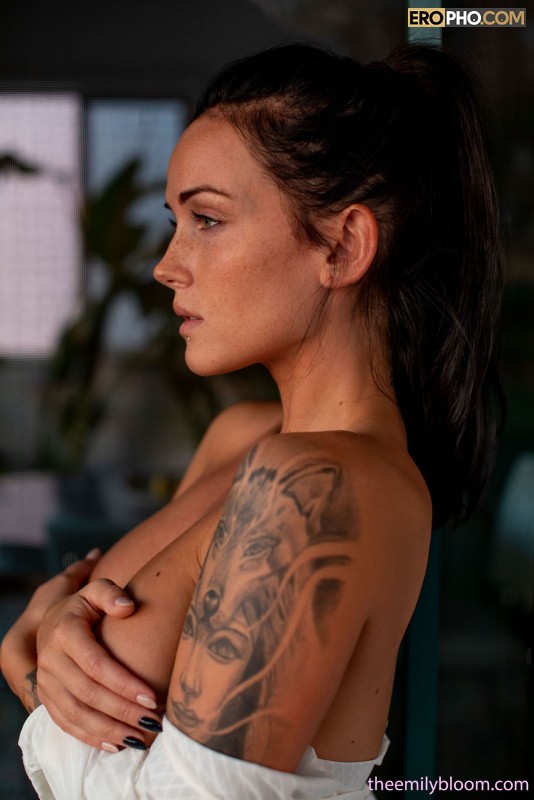 Оставив на теле лишь черное боди, знойная татуированная брюнетка Kayla Lauren заклеила сосочки черным скотчем, и стала позировать перед клиентом. Подняв самцу настроение и половой орган, деваха стала мацать сиськи. От всего этого женская пися не только промокла, но и обильно потекла. Обнажившись, леди накинула на стройное тело короткую белую рубашку, и начала позировать возле окна. Вместо того, чтобы чпокнуть стерву хоть в какую-нибудь дырочку, чувак стал просто массировать яйца и пускать слюни. Удовлетворив мажора стриптизом, чертовски горячая шкура забрала свой гонорар, и отправилась на интимное свидание к неграм.