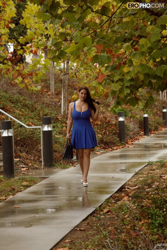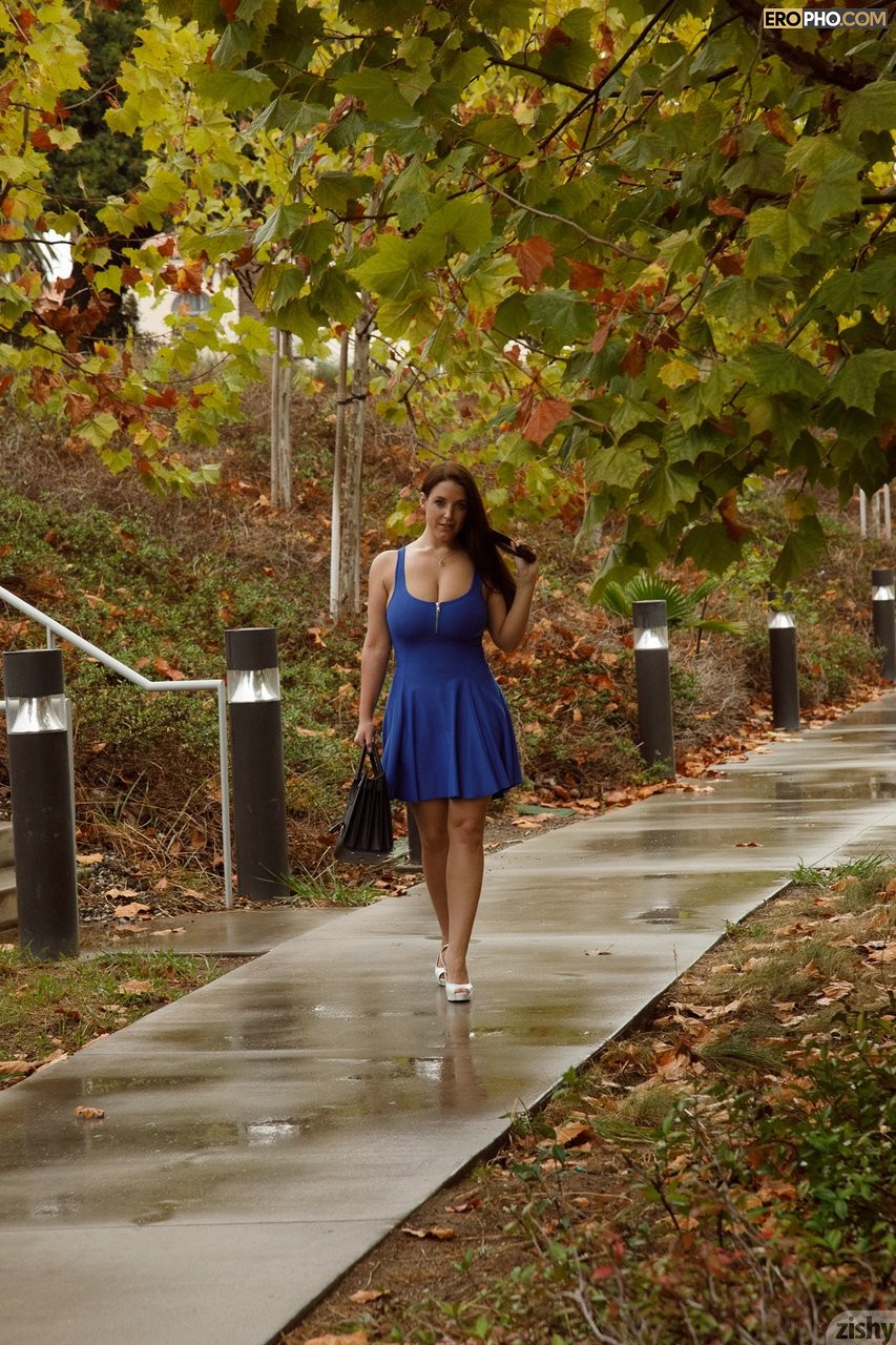 Накинув на симпатичное обнаженное тело короткое синее платье, рослая черноволосая баба вышла на улицу и начала соблазнять одиноких мужиков. Важно двигая булками, эротичная милочка выставляла напоказ груди и теребила сосцы. Заметив крутую тачку, возбужденная шалунишка взобралась в нее, разделась и принялась позировать. Перовое на что обратил внимание водитель, это была женская задница. Вместо того, чтобы вдуть наглой пассажирке, мужик стал просто снимать ее на фото камеру. В итоге голая красотка Angela White не только позабавила мужчину стриптизом, но и ощупала себе перед объективом.Информация