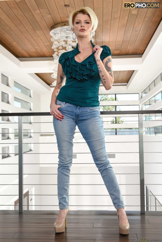 Известная татуированная эро модель с большой задницей Joslyn James обожает раздеваться перед объективами фотокамер. Устроившись с молодым фотографом в просторном особняке, эротичная блондинка принялась медленно стягивать одежду. Оставшись в трусах и лифчике, плутовка наклонилась и стала двигать сочной жопой, которую слегка прикрывала тонкая прозрачная ткань. Возбудив себя и оператора, стерва присела в кресло, спустила бюстгальтер и принялась задорно массировать большие силиконовые дойки. Через некоторое время стерва спустила трусы и выставила напоказ разработанную промежность, и уже давно не невинный шоколадный глаз.