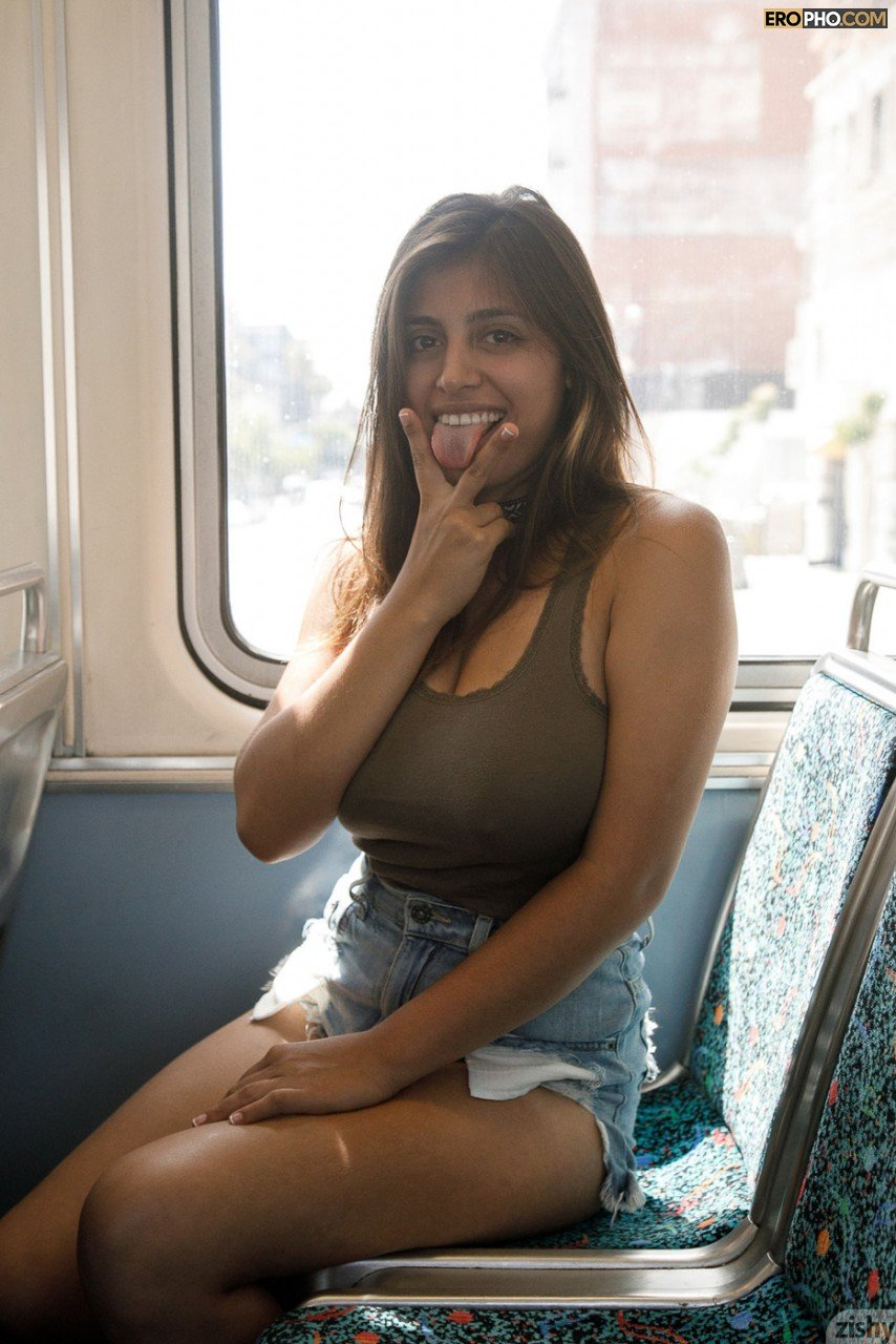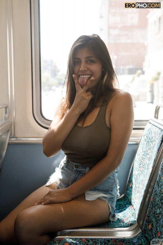 Замучившись ждать свой поезд, похотливая молодая мулатка Ella Knox начала заигрывать с мужиками прямо на вокзале. Соблазнив какого-то парня, цыпочка приступила трясти перед ним сисяндрами, которые слегка прикрывала маечку. Вскоре шалунишка вскоре забралась в салон, стянула наряд и показала свои сочные буфера и крупные сосочки. Шкура была настолько сильно горяча, что возбудились не только самцы, но и многие девушки. Хоть шлюшку и уговаривали полностью раздеться и показать письку и попку, но она так и не решилась на данный поступок. Потрусив натуральными дойками, милочка присела на свое место и стала смотреть в окно.
